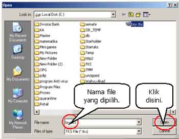 mengimport file *.tks anda, pertama anda kik Folder Export Import file pada
