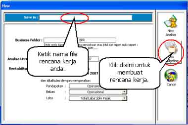 anda klik icon tersebut, selanjutnya anda ketik nama file rencana