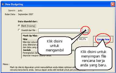 anda klik New Budgeting maka akan muncul Form yang terlihat seperti dibawah