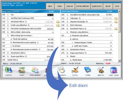 seperti : penyesuaian modal, kas, kredit, antarbank, laba rugi dll.